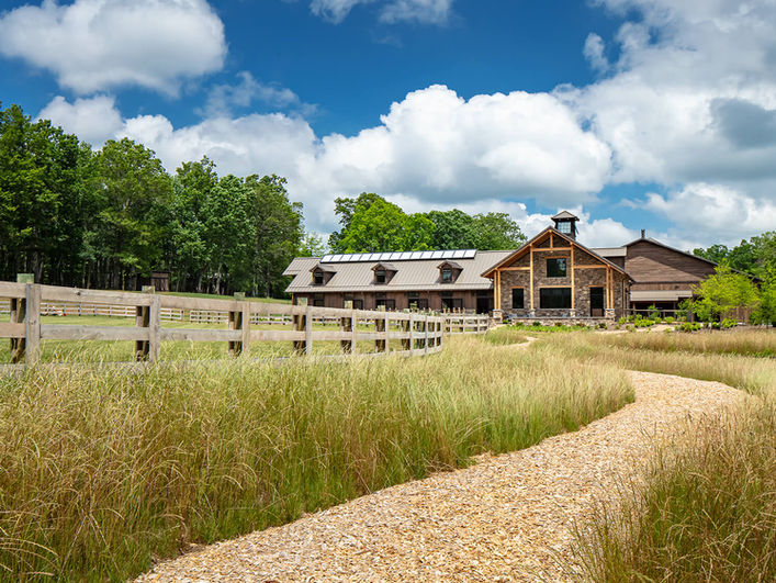 A private equestrian facility on 90 acres in a mountainous region of western Virginia. We began with site planning (vehicle service access, farm roads and riding trails, parking, dry lot/sacrifice paddocks).